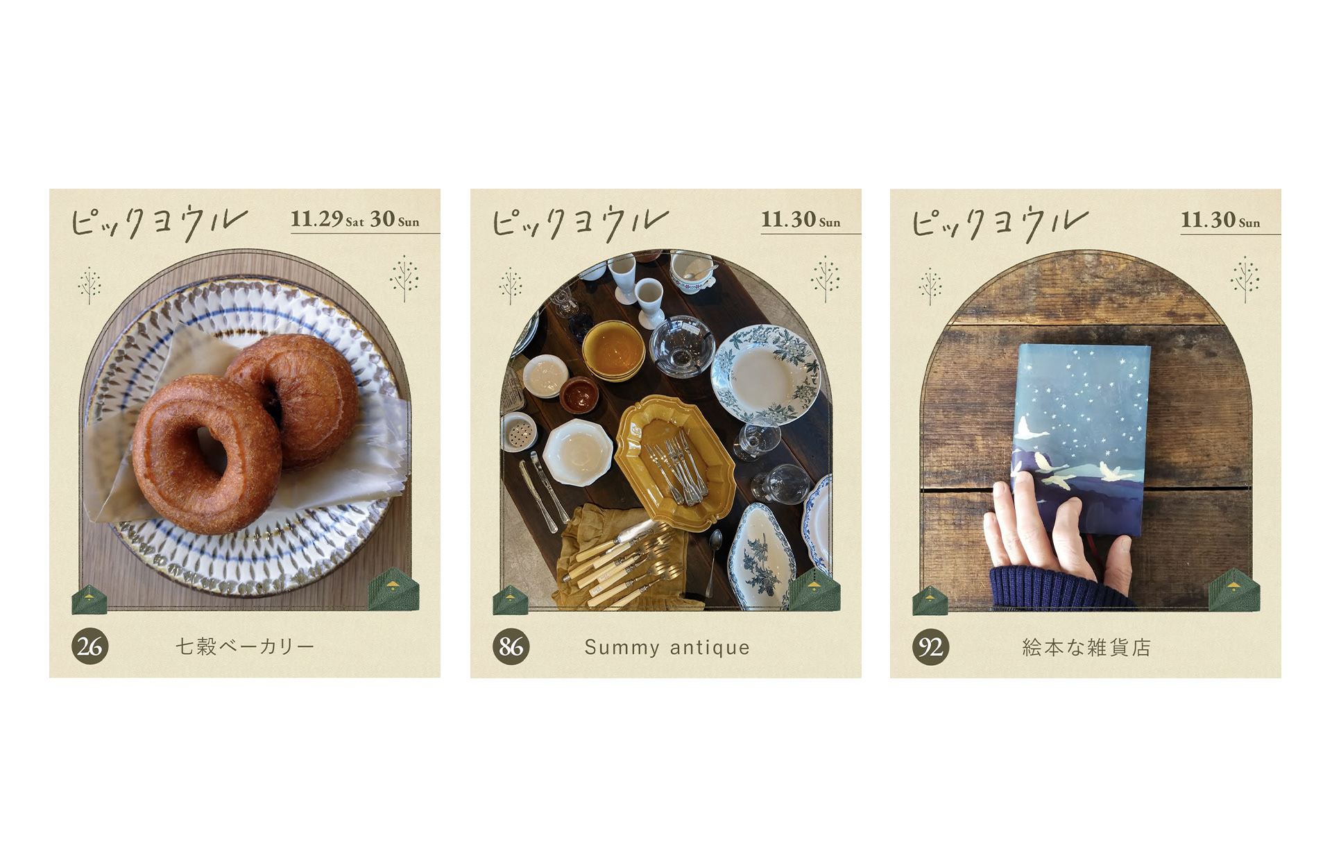 suginoさんのイラストにあわせ、背景やモチーフはテクスチャを重ね、温かみのある質感をだしました。